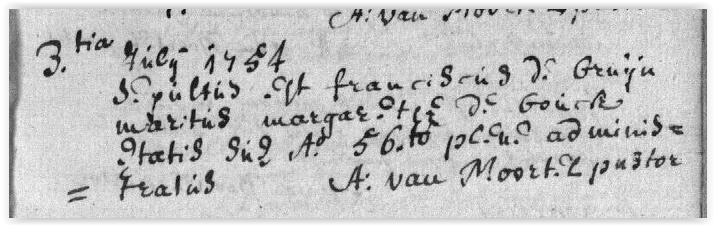 We vinden Frans voor het eerst in de archieven terug in de akte van zijn huwelijk met Margareta De Bouck. Deze kan je hier zien.